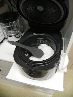 Rengeteg módon lehet változatossá tenni a sima "fehér" rizst. Van hántolatlan rizs, ami megfőzve keményebb, de egészségesebb is. Lehet a kettőt keverni is. Aztán létezik a taki-komi gohan, amikor mindenfélét (pl. shiitake gomba, bambuszrügy, répa, bab, egyéb zöldségek) belekeverünk és úgy inditjuk el a főzést. A főzési idő nagyjából egy óra, miután a gép kiereszti a gőzt a tetején, már leshetjük a digitális mutatót, ami a rizs elkészültét jelző 8 sipszó előtt 10 perccel visszaszámlál. Igy könnyű, igaz? És a legjobb az egészben, hogy amig ki nem kapcsoljuk a főzőt, a frissen főtt rizst korlátlan ideig melegen tartja, igy igazán finom! Újramelegités csak mikróban lehet, az meg már nem az igazi. A rizsfőző (szuihanki) minősége nagyban befolyásolja a rizs élvezeti értékét. Jobb gép, finomabb vacsora.